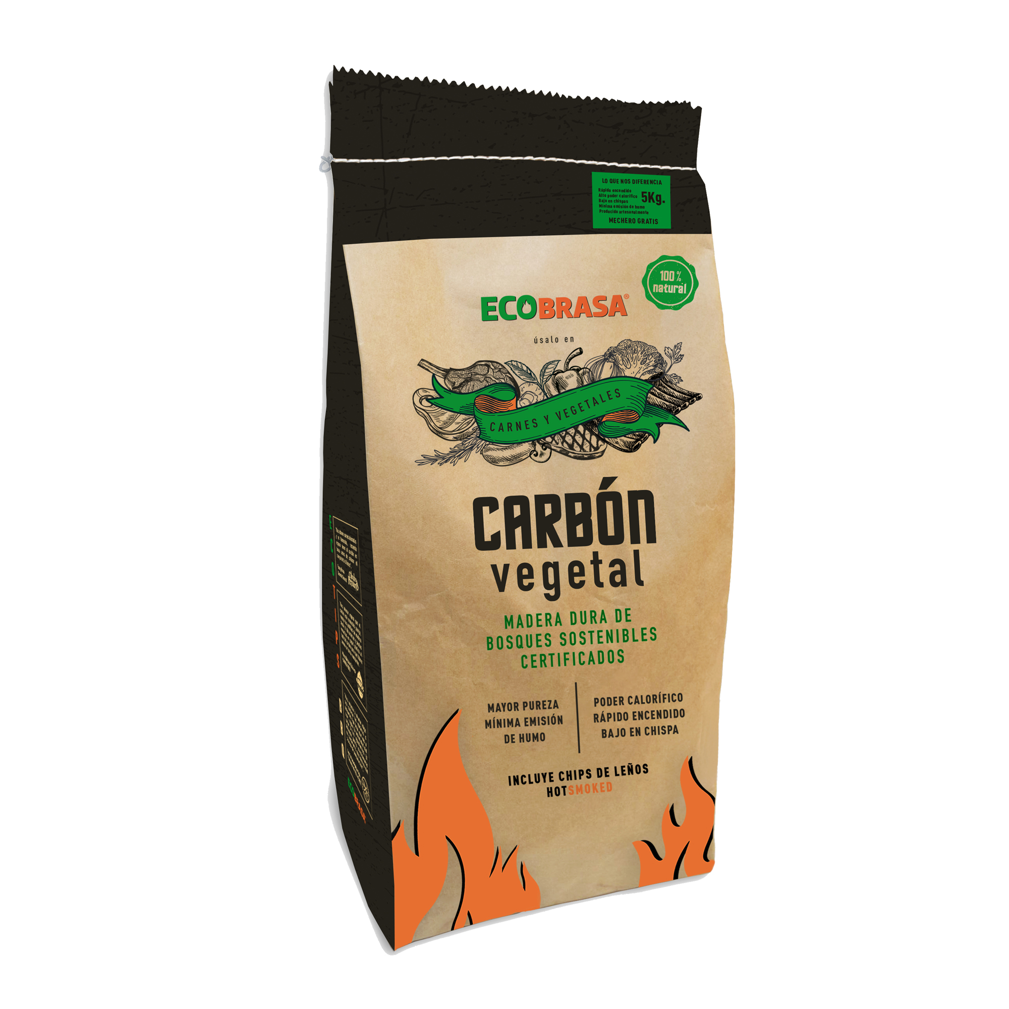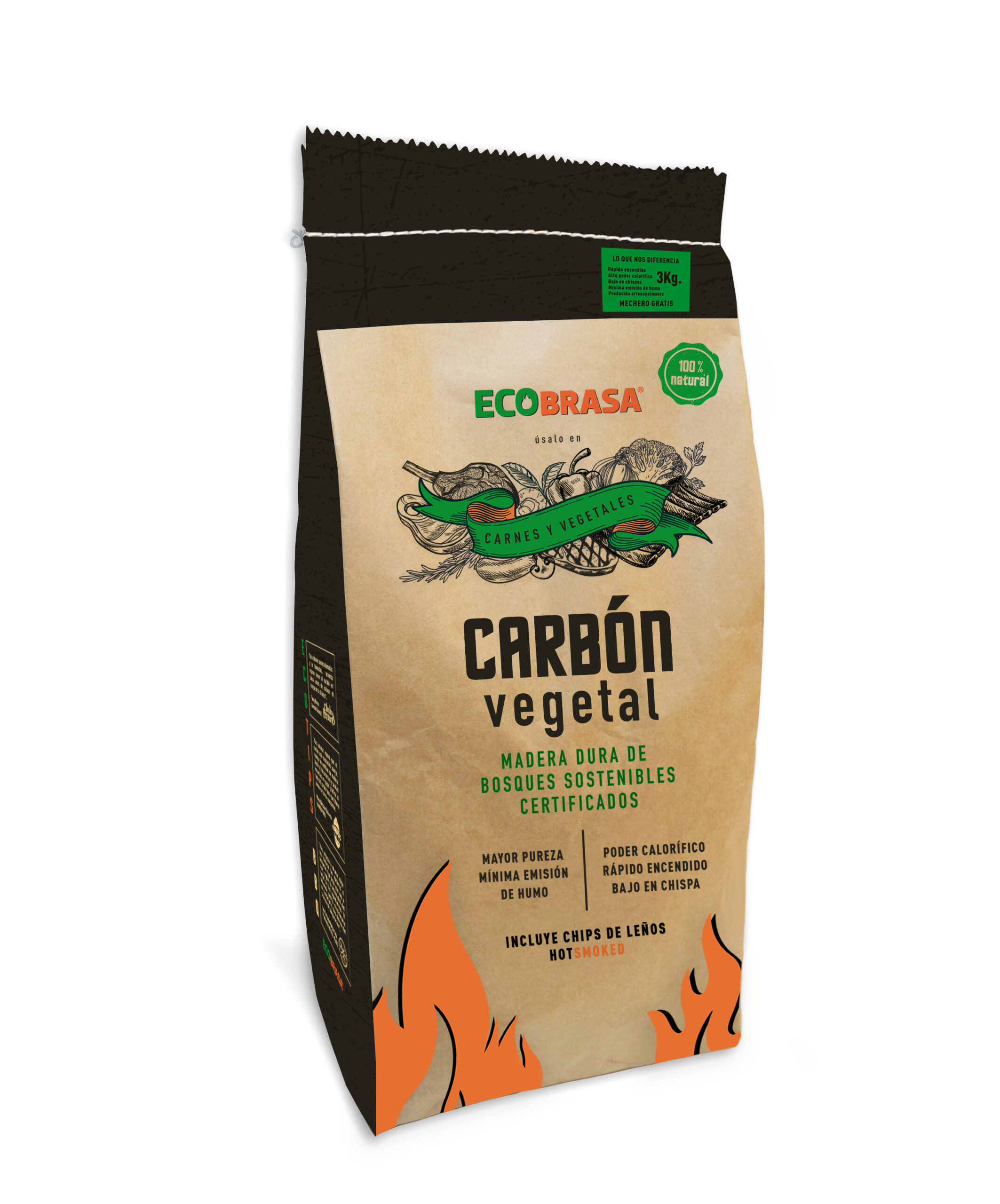 Elaborado a base a MADERA DURA, proveniente de bosques sostenibles certificados. Obteniendo un carbón de mayor pureza, mínima emisión de humo, bajo en chispas, temperatura constante y mayor poder calorífico. Las Briquetas están elaboradas a base de biomasas por lo cual evitamos tala de arboles ayudando a la conservación de bosques.